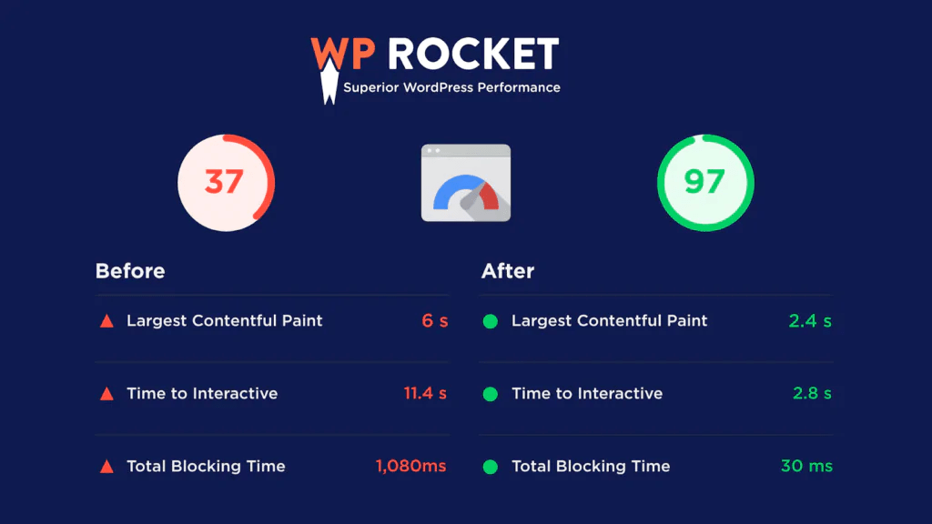 WP Rocket é o plugin de cache mais poderoso e fácil de usar para WordPress, desenvolvido para fazer o seu site voar em segundos – sem complicações técnicas.